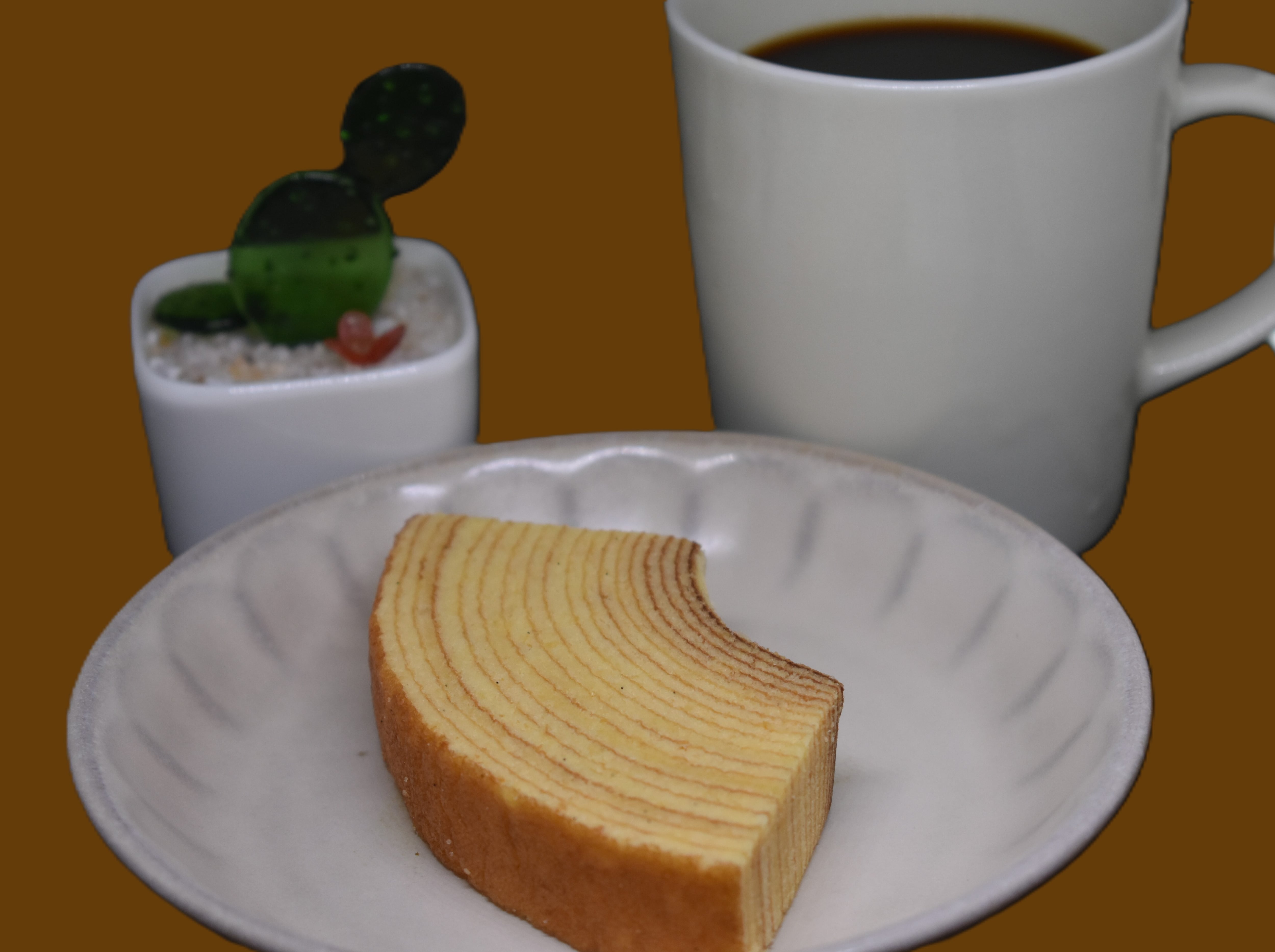 抹茶の香り、渋み、奥深い甘味を楽しむ、和をふんだんに感じるバウムクーヘンです。